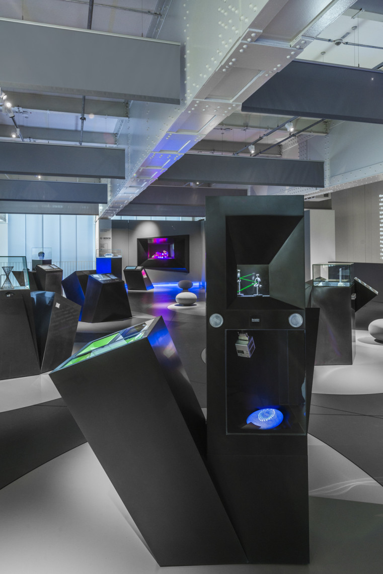 Die weiteren Vitrinen stellen die Kernaspekte der Innovation, ihre wirtschaftliche Bedeutung und die Persönlichkeiten der Preisträger dar. Es wird erläutert, was unter dem Begriff der kalten Bearbeitung zu verstehen ist – und wie man sie industriell nutzt. Anhand wichtiger Bauteile eines Ultrakurzpulslasers wird erklärt, wie ein solcher Laser funktioniert, und schließlich beispielhaft gezeigt, wie vielfältig die Anwendungsmöglichkeiten der Laser sind.