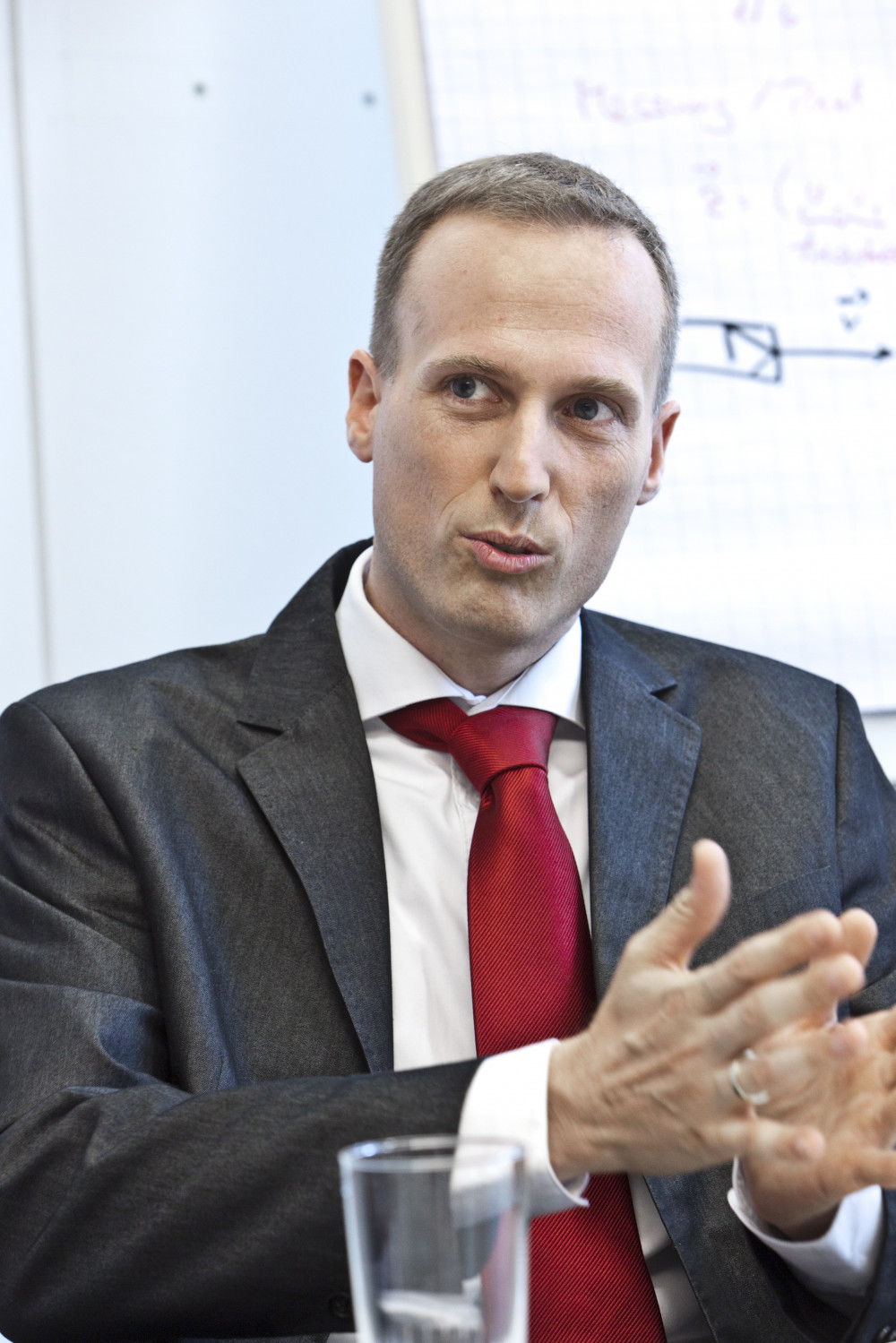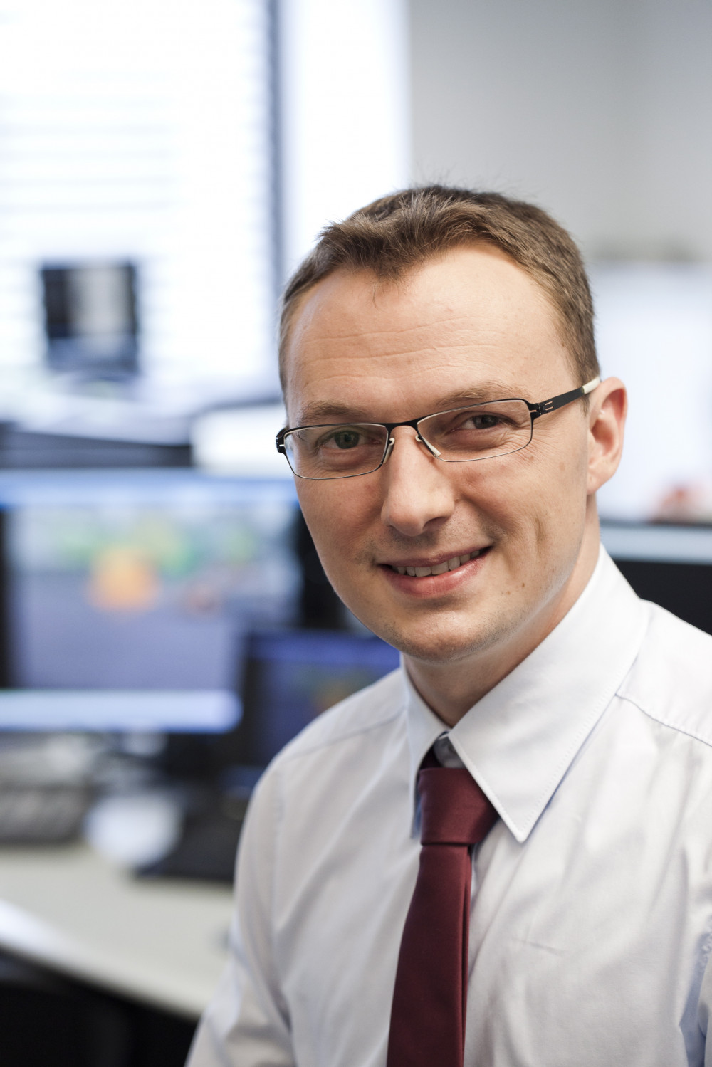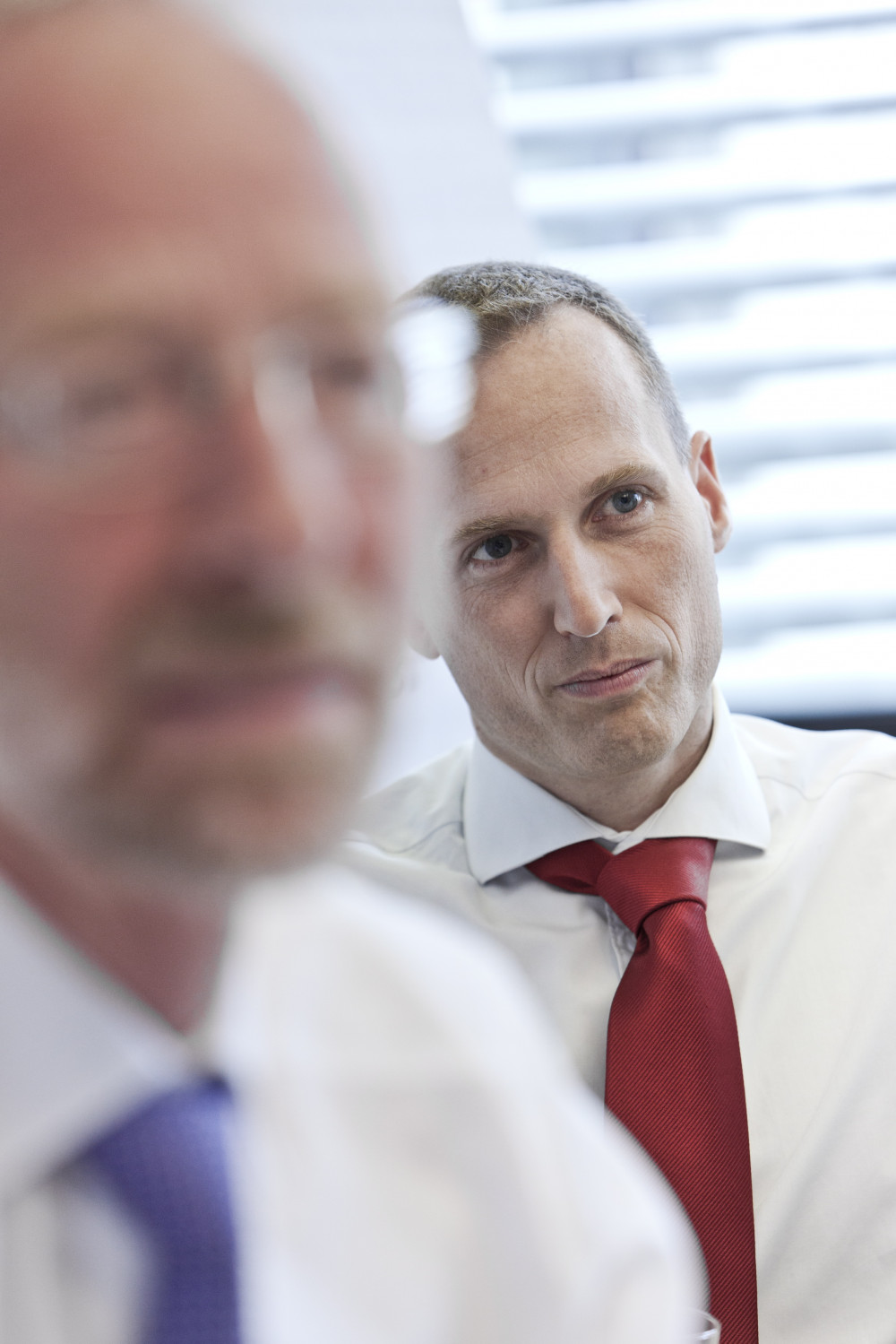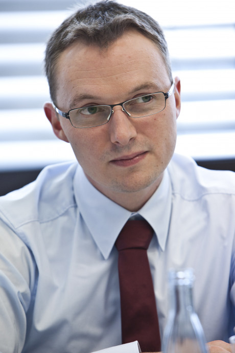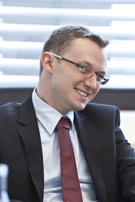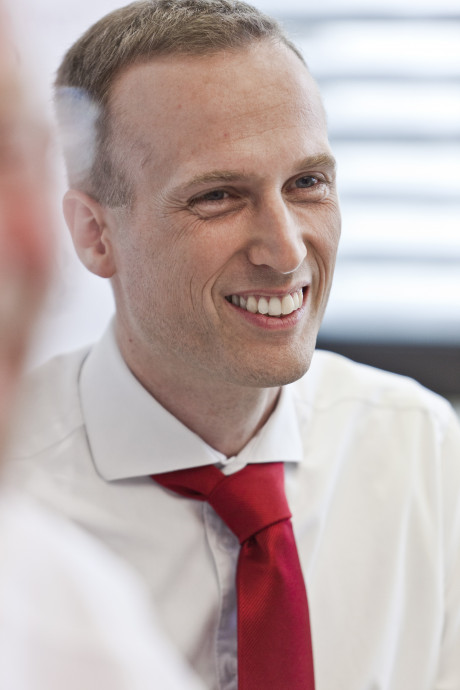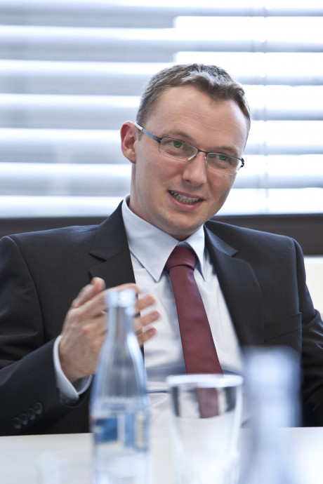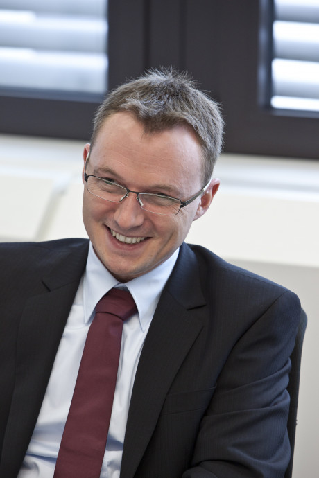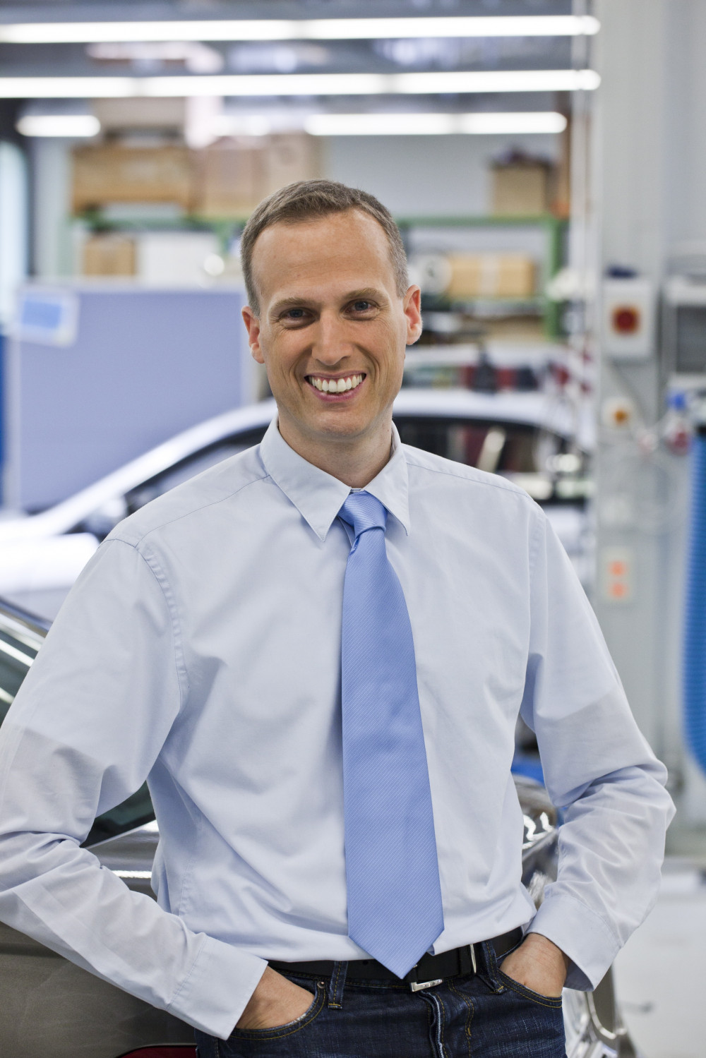 Ergebnis des 6D-Vision Verfahrens: Die Farbe kodiert die Entfernung der analysierten Punkte von Rot (nah) über Gelb zu Grün (weit entfernt). Die Pfeile zeigen auf die prädizierte Position in 0,5 Sekunden. Von links nach rechts: Dr.-Ing. Clemens Rabe, Dr. rer. nat. Stefan Gehrig, Dr.-Ing. Uwe Franke.