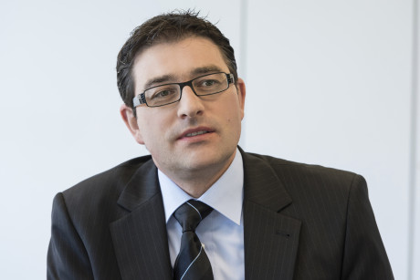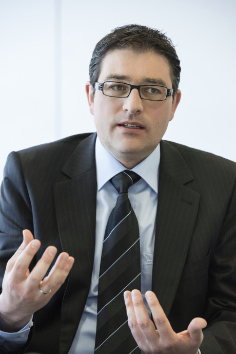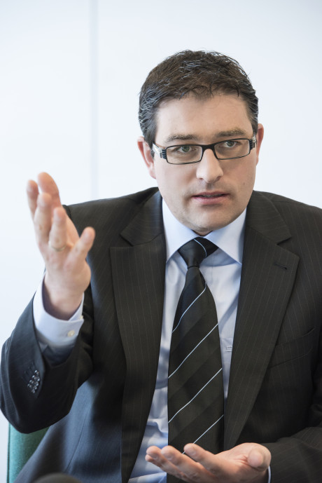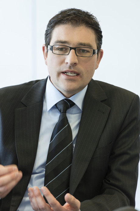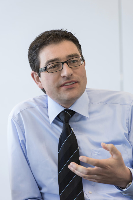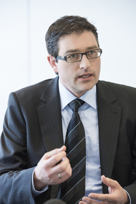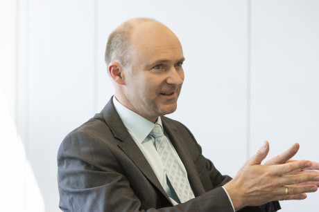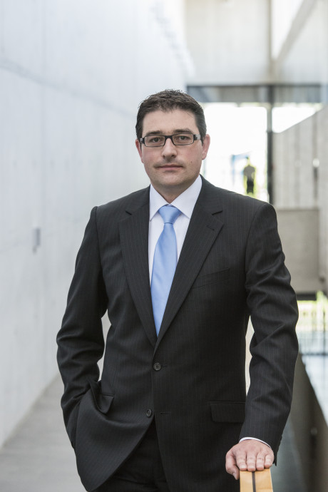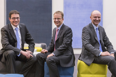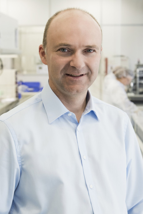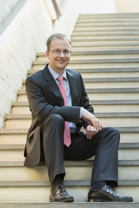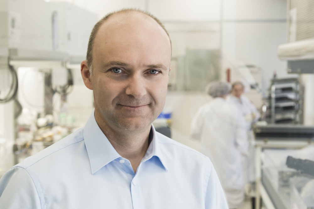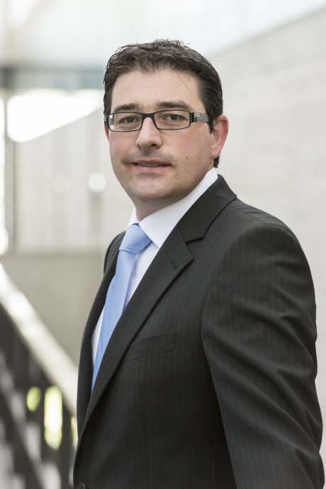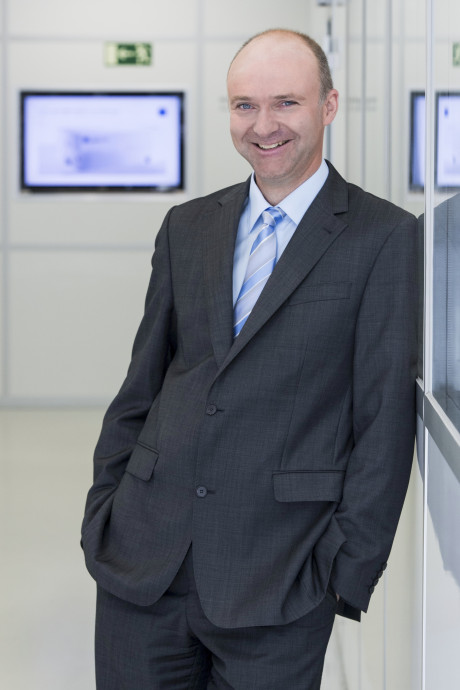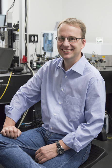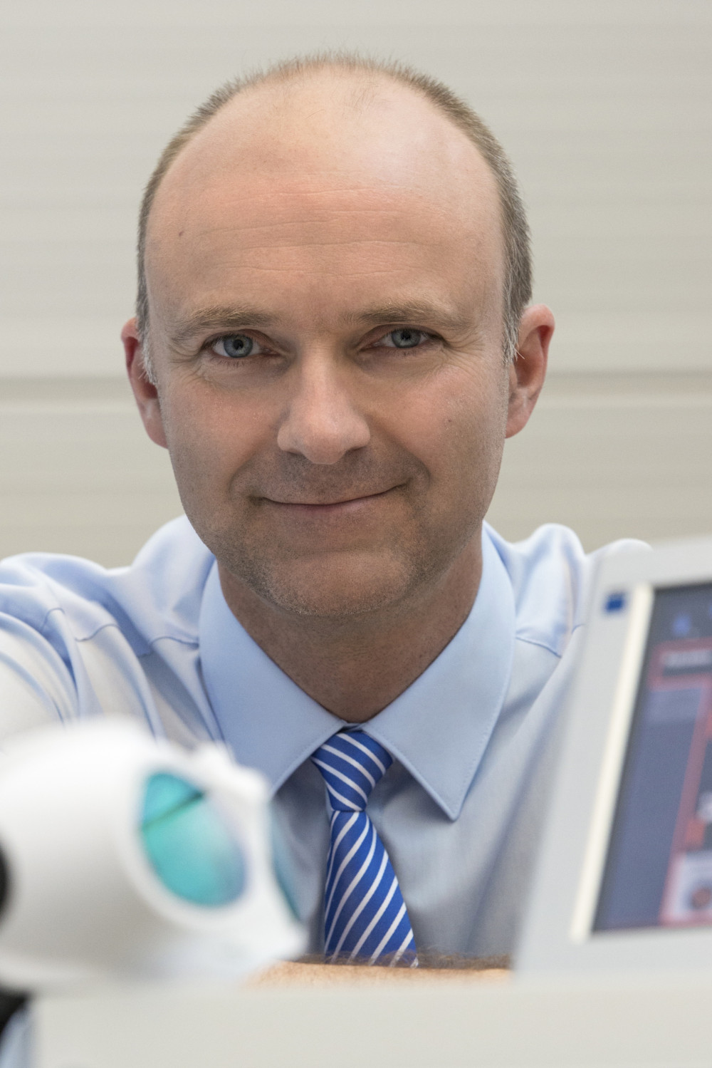 Historische Scheibenlaser-Pumpanordnung aus dem ersten Ultrakurzpuls-Förderprojekt von Trumpf (der silberne Draht illustriert den Strahlengang des Pumplichts über die symbolisierte Laserscheibe).