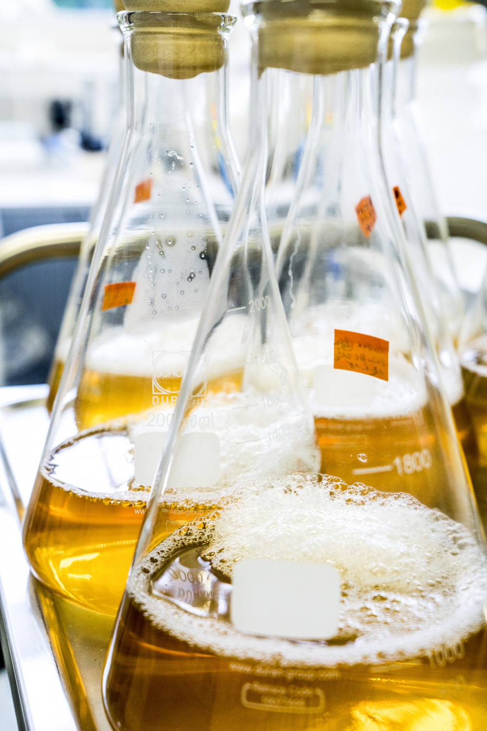 Kolben mit Medium für Bakterien
