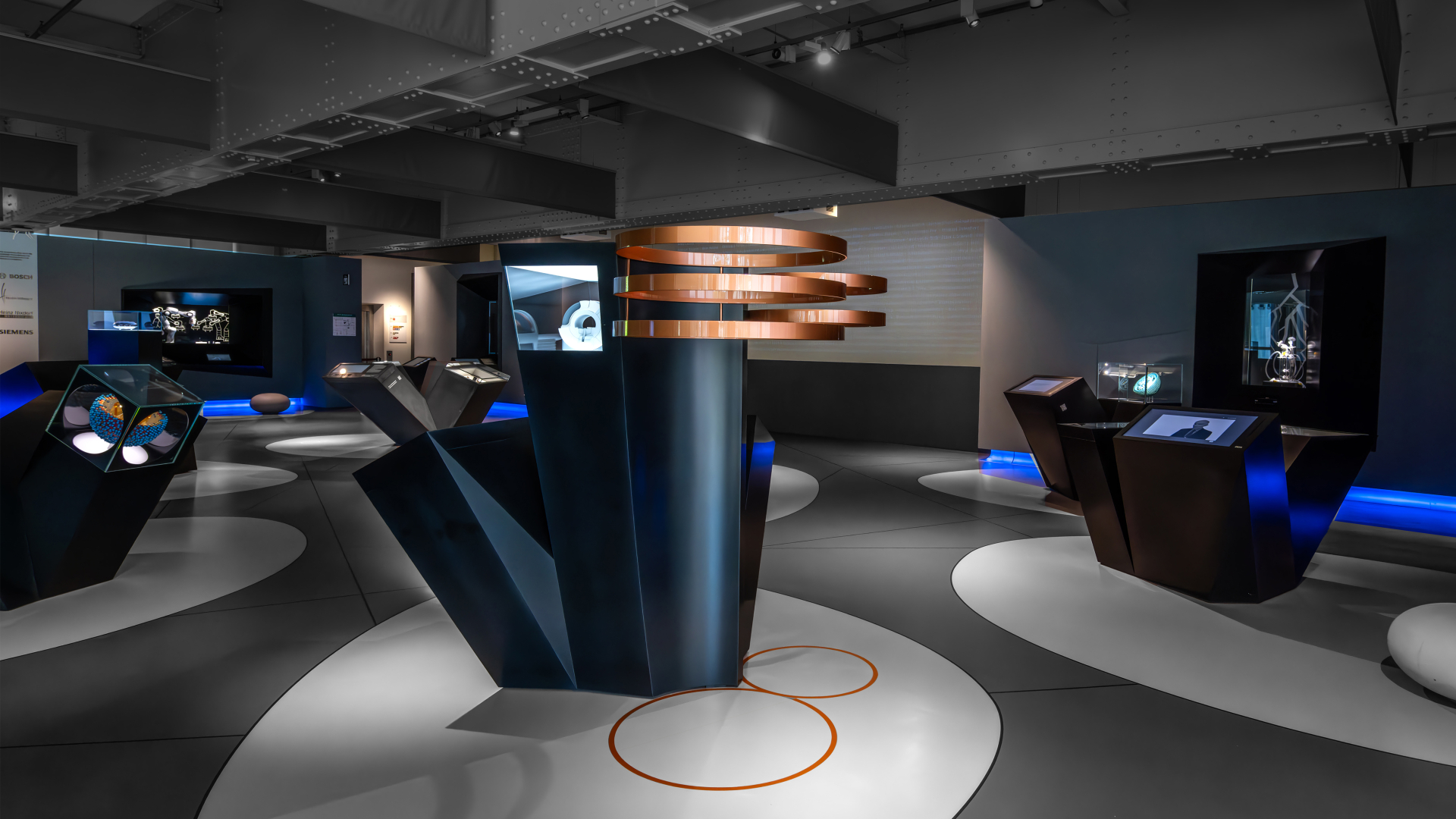 Diese Elemente der Innovation stellt das Modul der Preisträger 2023 heraus, dabei gliedert es sich in das bestehende Designkonzept ein. Weithin sichtbar symbolisieren die am Modul angebrachten kupferfarbene Ringe unterschiedlicher Größe, diesen einen, sehr wesentlichen Teil des Erfolges. Der Besucher kann den beachtlichen Unterschied der Zugangsröhre selbst körperlich erfahren und erkennen, welchen Vorteil das für Patienten mit Übergewicht oder Angstpatienten bedeutet, die bisher keinen Zugang zu MRT-Untersuchungen hatten.