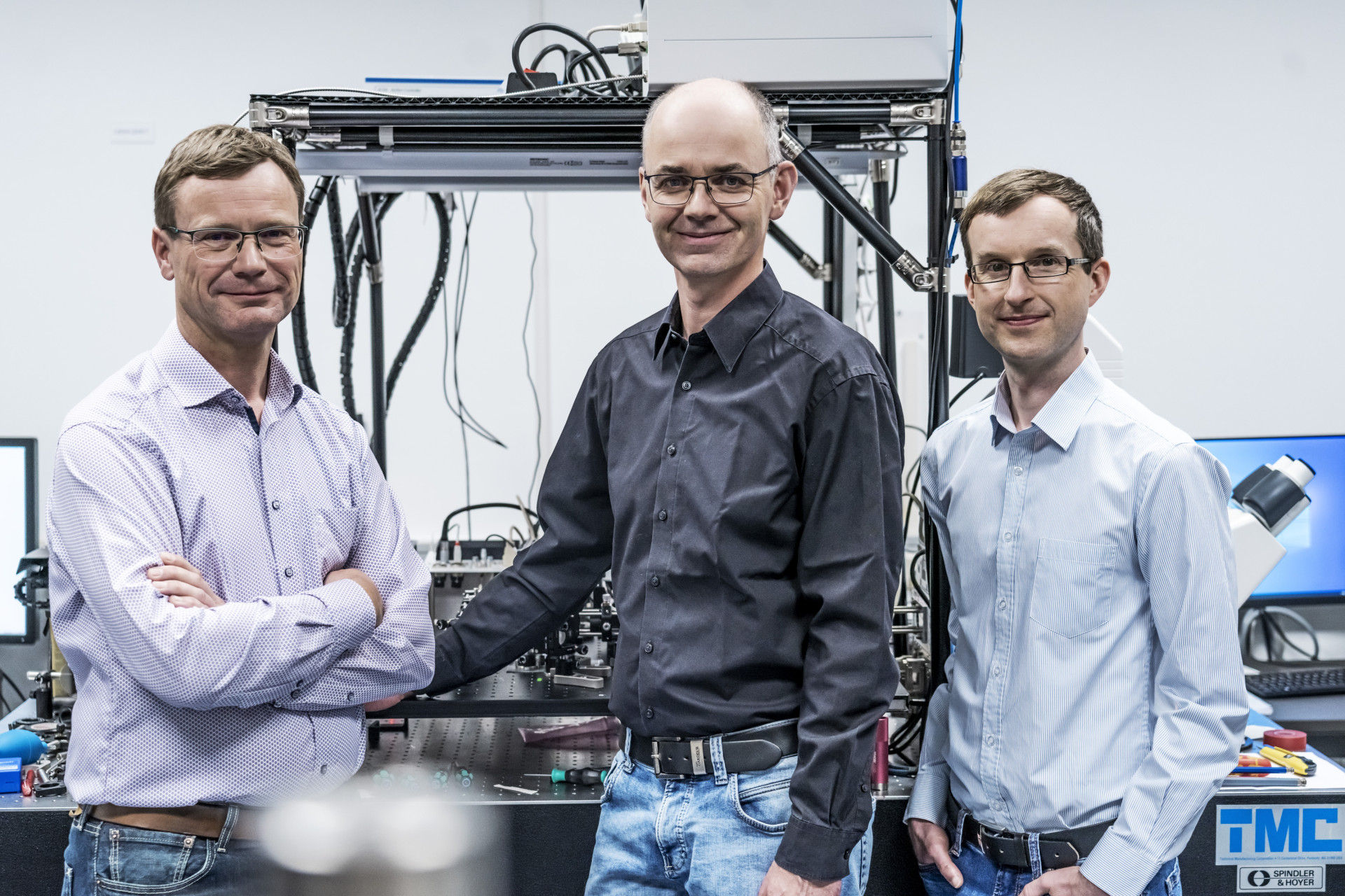 Das ermöglicht eine breite Palette bislang undenkbarer Anwendungen. Von der Innovation profitieren sowohl die biologische und biomedizinische Grundlagenforschung als auch die Suche nach neuen Ansätzen zur Diagnose oder Behandlung von Krankheiten. Thomas Kalkbrenner ist Teamleiter und Lead Architect R&D Special 3D bei Carl Zeiss Microscopy, Jörg Siebenmorgen ist Entwicklungsprojektleiter im Bereich Advanced Development, Ralf Wolleschensky leitet den Bereich Advanced Development.