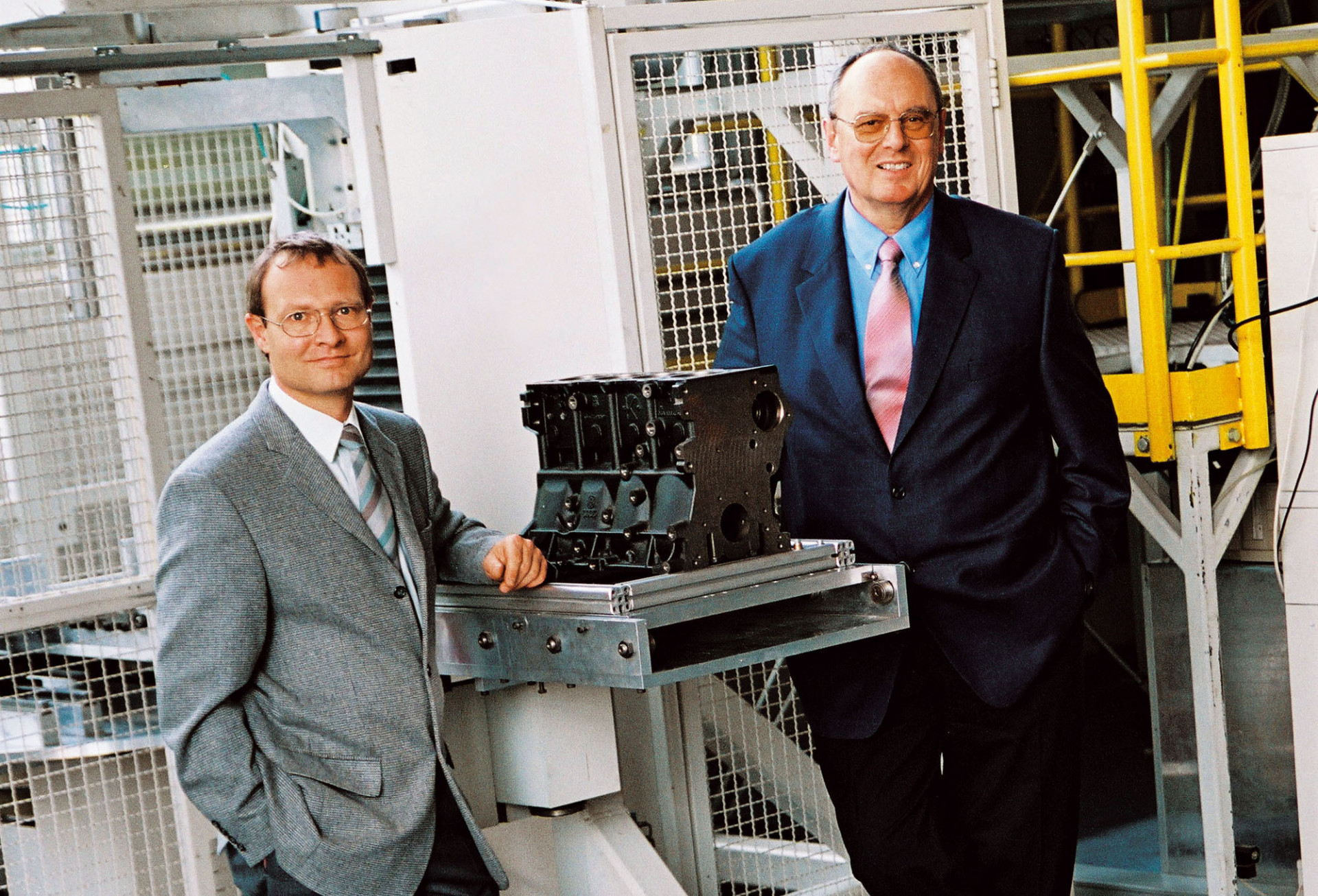 1994 hatten wir uns im Rahmen des BMBF-Förderprogramms "Laser 2000" um eine Förderung bemüht. Es wurden über 120 Vorschläge für eine Förderung eingereicht; 18 davon erhielten den Zuschlag. Wir waren mit unserem Vorhaben dabei. Inhalt des Projektes waren eine weitere Verbesserung der Topografie der UV-Laser-belichteten Zylinderlaufbahn, der motortechnische Nachweis hinsichtlich der Verschleiß- und Ölverbrauchsreduzierung und der Bau einer seriennahen Belichtungsanlage. Projektpartner waren neben AUDI und VW das damalige ATZ-EVUS. Hier sollte die geplante seriennahe Belichtungsanlage installiert und betrieben werden. Zusammen mit Prof. Bergmann erarbeiteten wir das Konzept der Anlage. Dabei erhielten wir Unterstützung durch die Firma ELOTHERM, die die Konstruktion und den Bau der Handhabungseinrichtung sowie des mechanischen Teils des Strahlführungssystems übernahm. Lambda Physik zeichnete für den Laser verantwortlich. Die wissenschaftlichen metallkundlichen Untersuchungen zur UV-Laserbelichtung der Zylinderlaufbahn wurden bei Prof. Bergmann am Lehrstuhl "Werkstofftechnik und Technologie der Metalle" der Universität Erlangen bzw. am Lehrstuhl "Metallische Werkstoffe" der Universität Bayreuth durchgeführt. Das Projekt war von Beginn an als Verbundprojekt ausgelegt. Im September 1996 bekamen wir rückwirkend zum 1. Juli grünes Licht zum Start des Projektes. Die UV-Belichtung für die ersten Motore, die zum tribologischen Nachweis auf den RNT-Prüfstand kamen, musste noch mit dem Siemens XP2020 Laser erfolgen. Wir hatten vorgesehen, hierzu drei Motore über jeweils 300 Stunden laufen zu lassen. Wir hatten uns dabei vollkommen verschätzt. Die Prüfstandergebnisse waren derart positiv, dass wir uns entschlossen, die Tests fortzusetzen, um mehr Informationen zu erhalten. So sind Laufleistungen von 800, 1200 und 2000 Stunden zustande gekommen. Es wäre schade gewesen, wenn wir diese Zeit nicht investiert hätten.