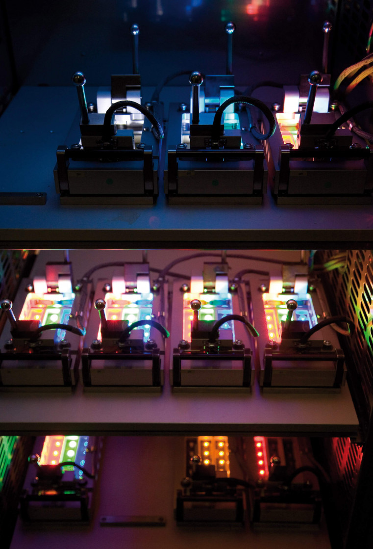 Es ist uns gelungen, eine Technologieplattform zu etablieren, die unabhängig vom Materialsystem ist. Das heißt, sie funktioniert für alle verfügbaren Farben und sogar auch für Licht jenseits des sichtbaren Bereichs, für das infrarote. Es entstanden LED-Chips in allen Farben, die eine praktisch identische Abstrahlcharakteristik haben. Diese Errungenschaft erlaubt es uns nun auch auf der Package-Seite, diese Chips unterschiedlicher Farben zu neuartigen Lichtquellen zusammenzusetzen.