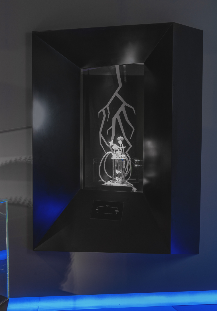 Those involved in its development called it “Lightspeed”, and that is also the central theme of the module. In the display case on the wall designed to intrigue visitors is the bioreactor in which the very first batch of vaccine was produced. A bolt of lightning projects out from it that symbolizes both the path of research from the idea to the project as well as the unbelievable rate of its implementation.