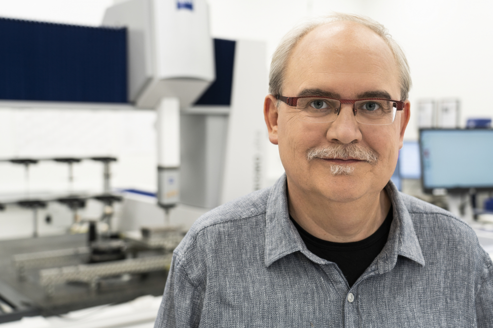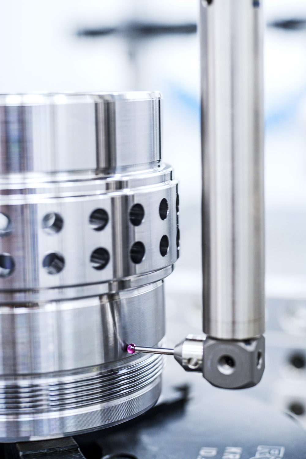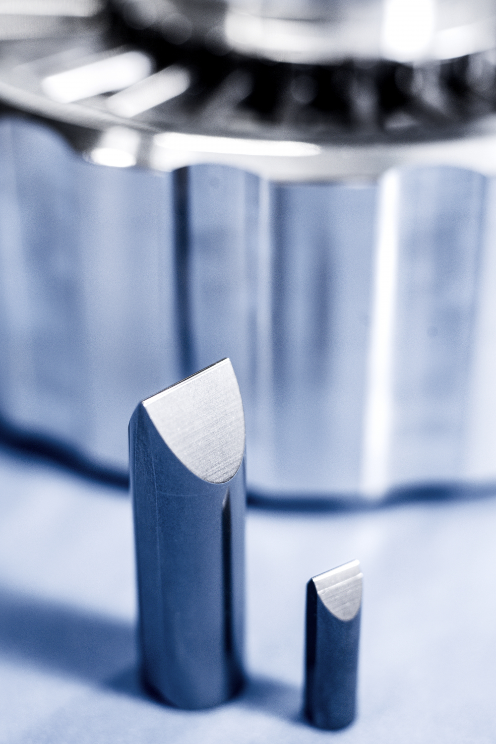 Die Zentrierspitze einer Fräsmaschine in der Galaxie-Produktion.