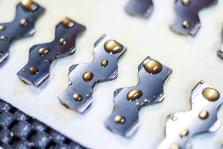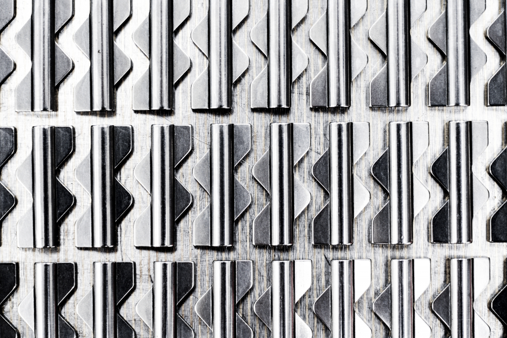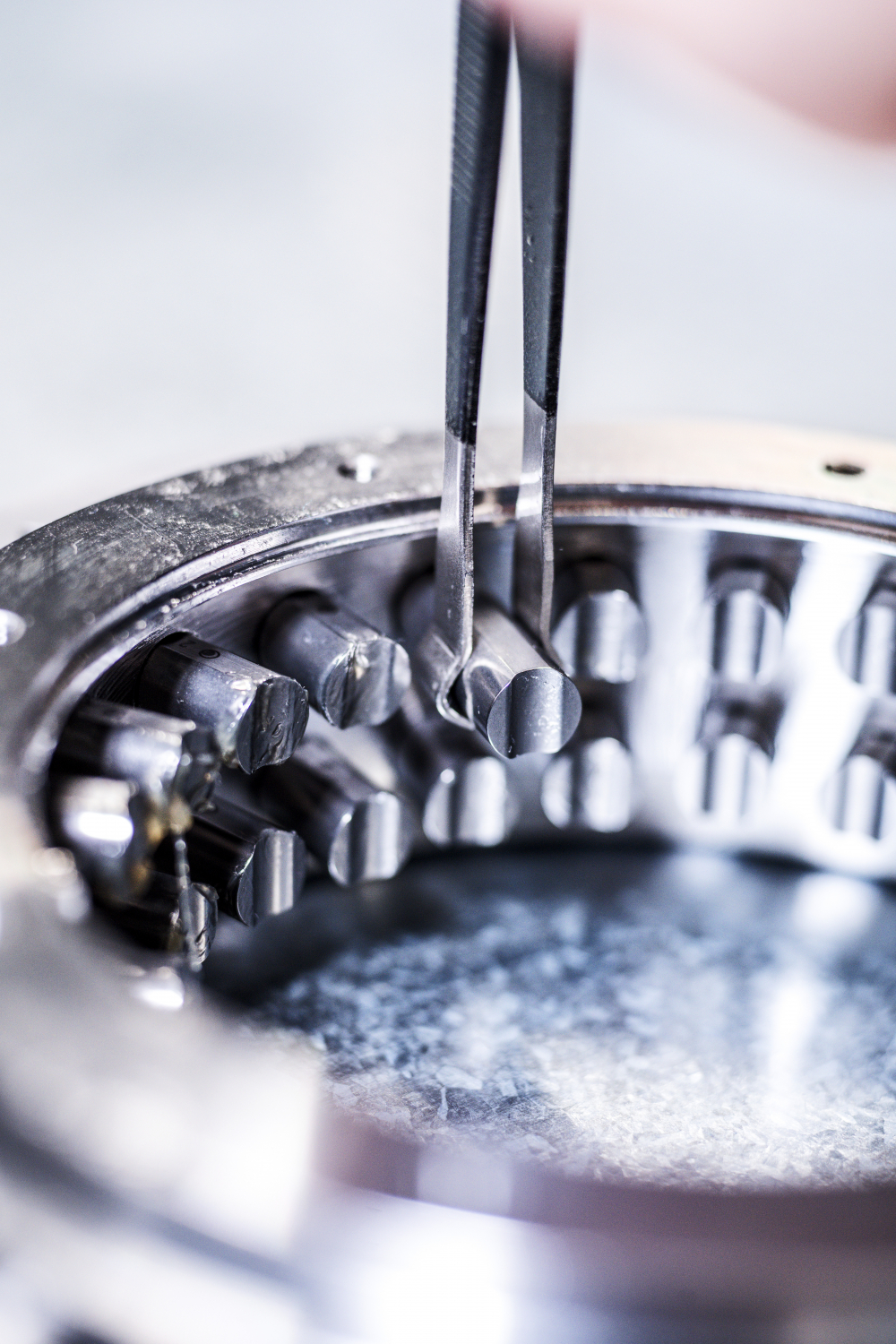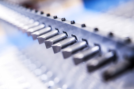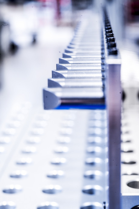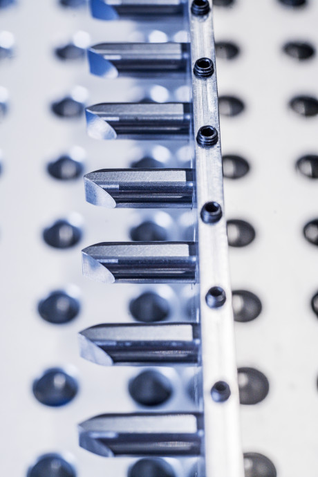 Die 48 Rundzähne werden durch den Zahnträger geschoben.