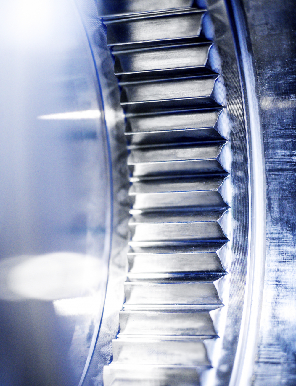 Viele Einzelzähne werden entlang einer Hohlradverzahnung geführt.