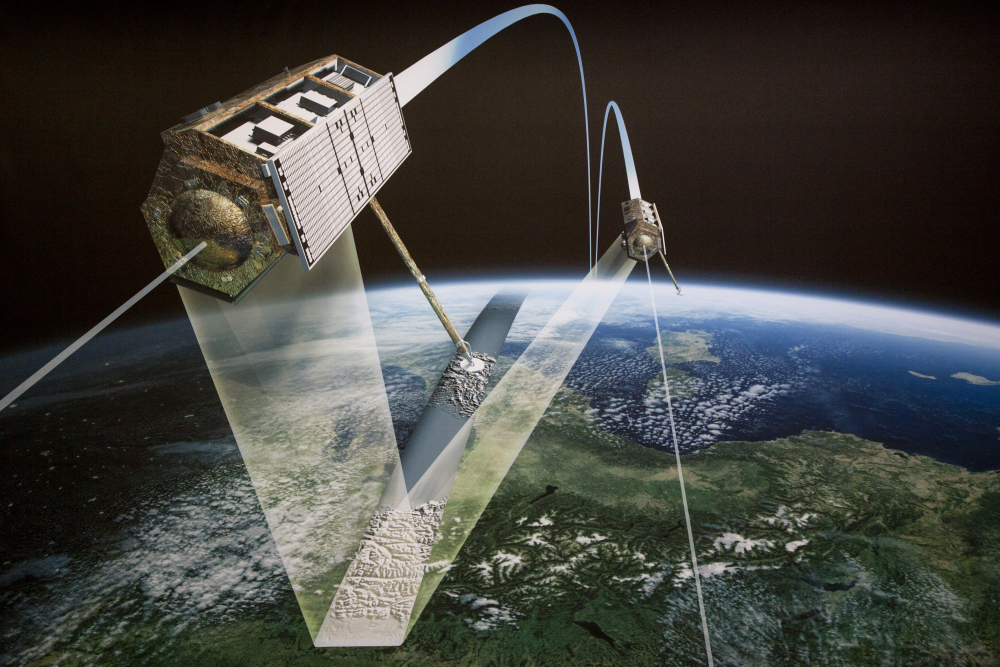 Die Radarsatelliten der TanDEM-X-Mission umkreisen in einem ausgeklügelten Formationsflug die Erde und erstellen einzigartige dreidimensionale Aufnahmen der gesamten Erdoberfläche