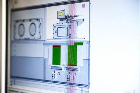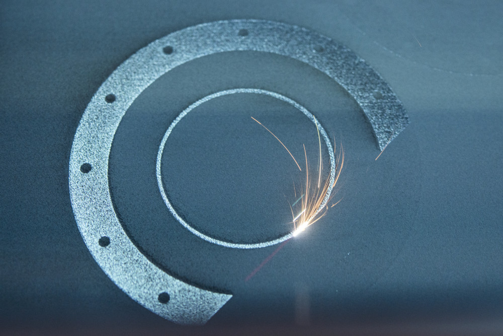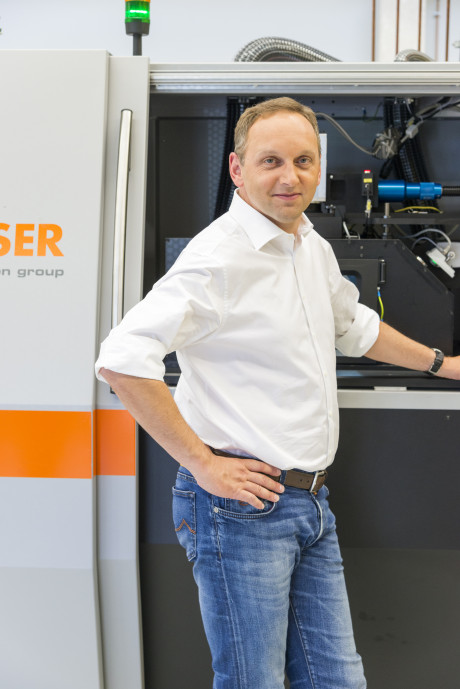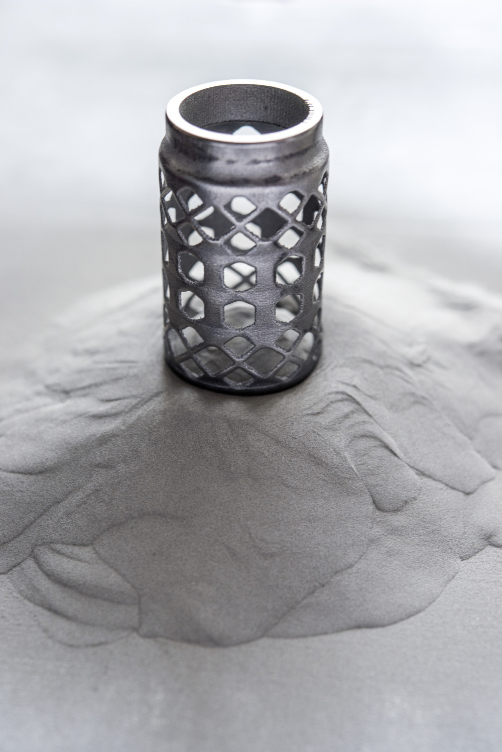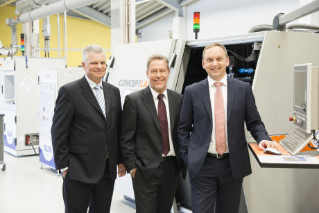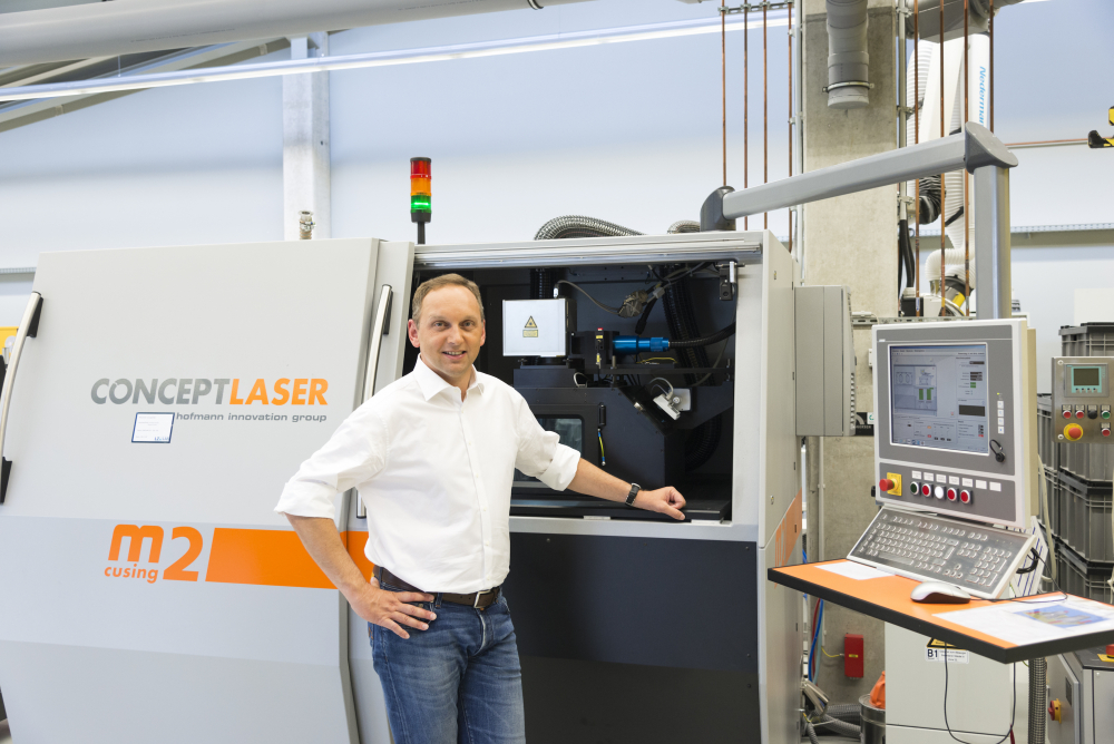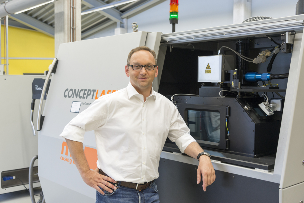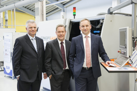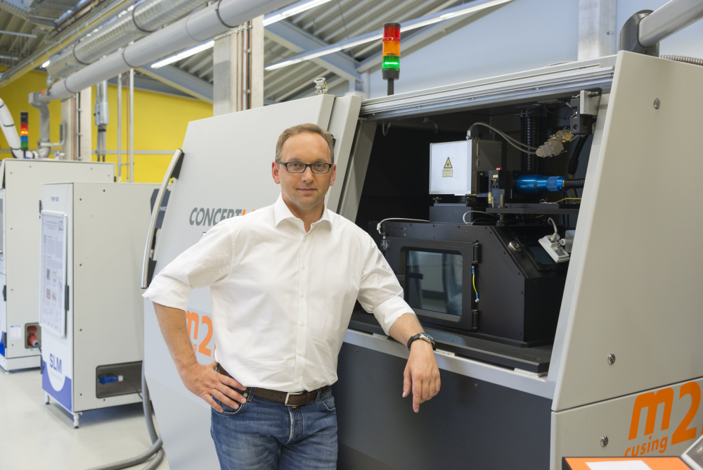 Der Laser bei der Arbeit: Die Concept Maschine verschweißt Titanpulver zu einem neuen Bauteil
