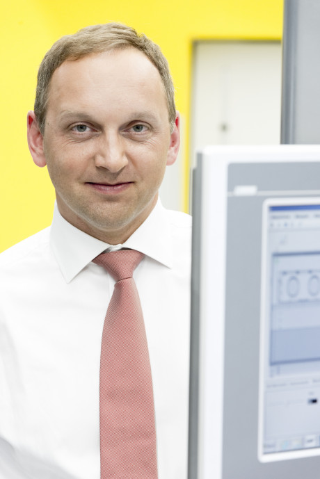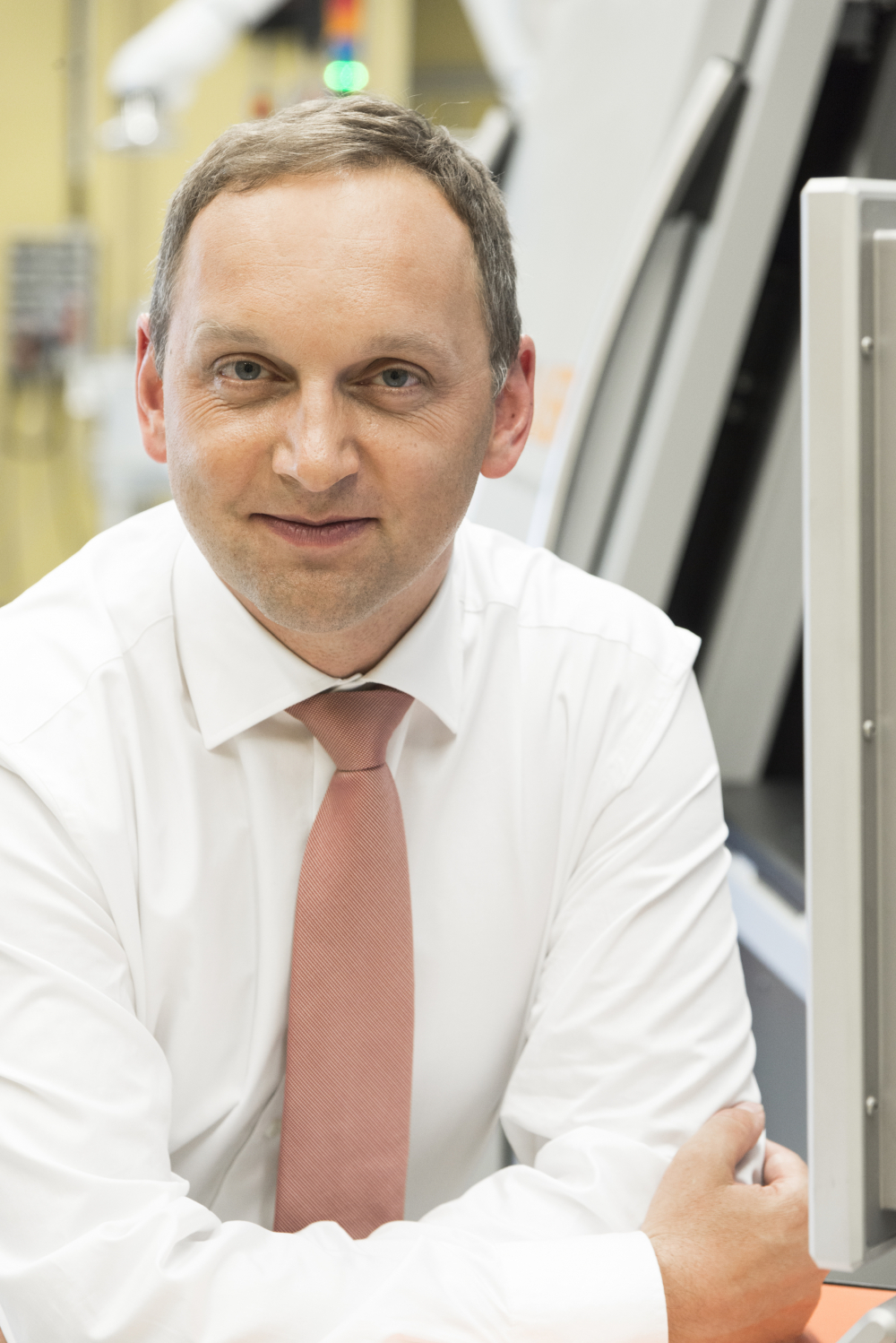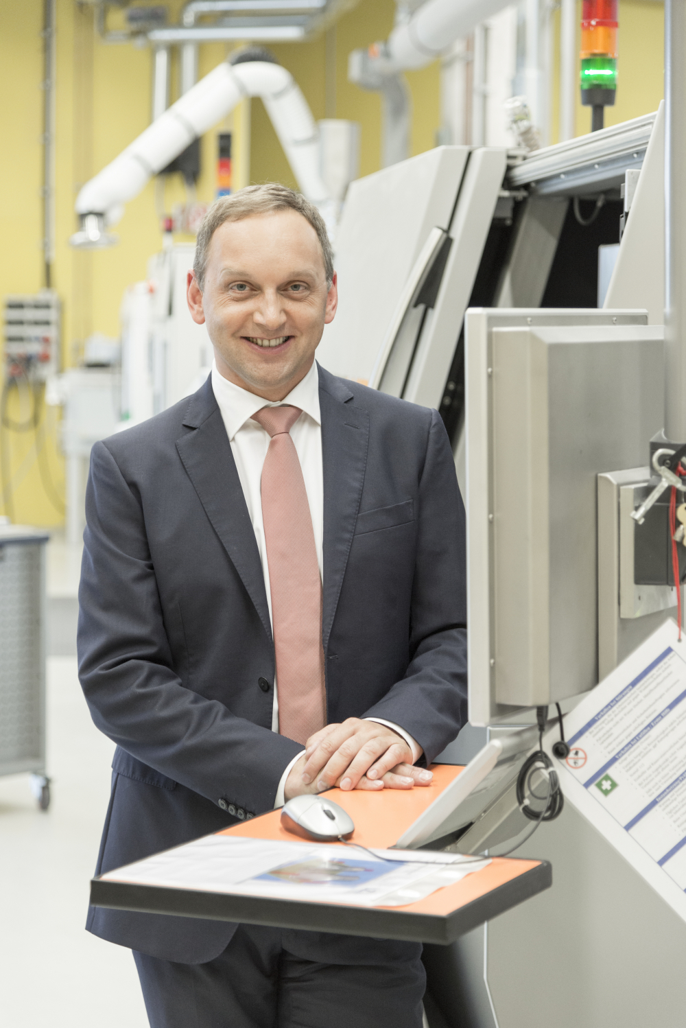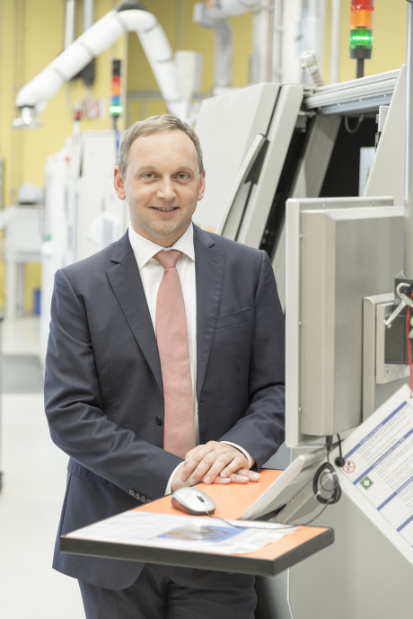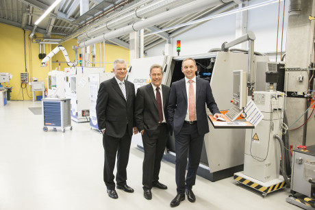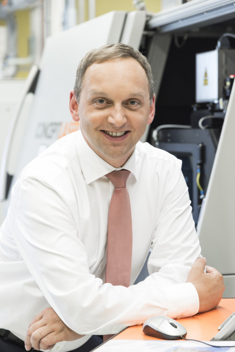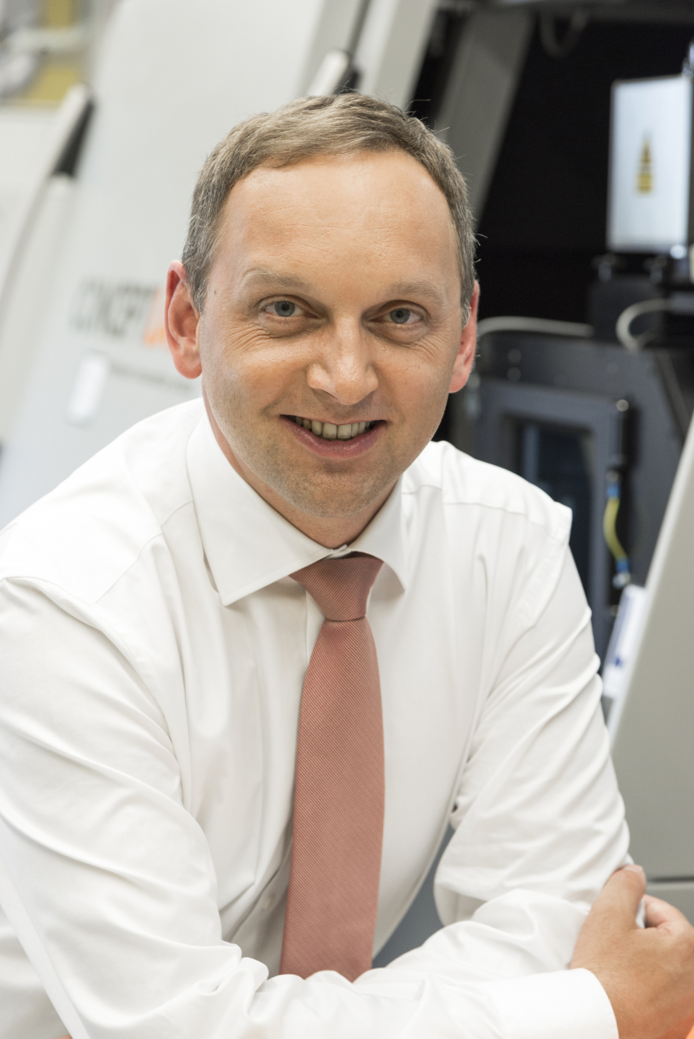 Der Laser bei der Arbeit: Die Concept Maschine verschweißt Titanpulver zu einem neuen Bauteil
