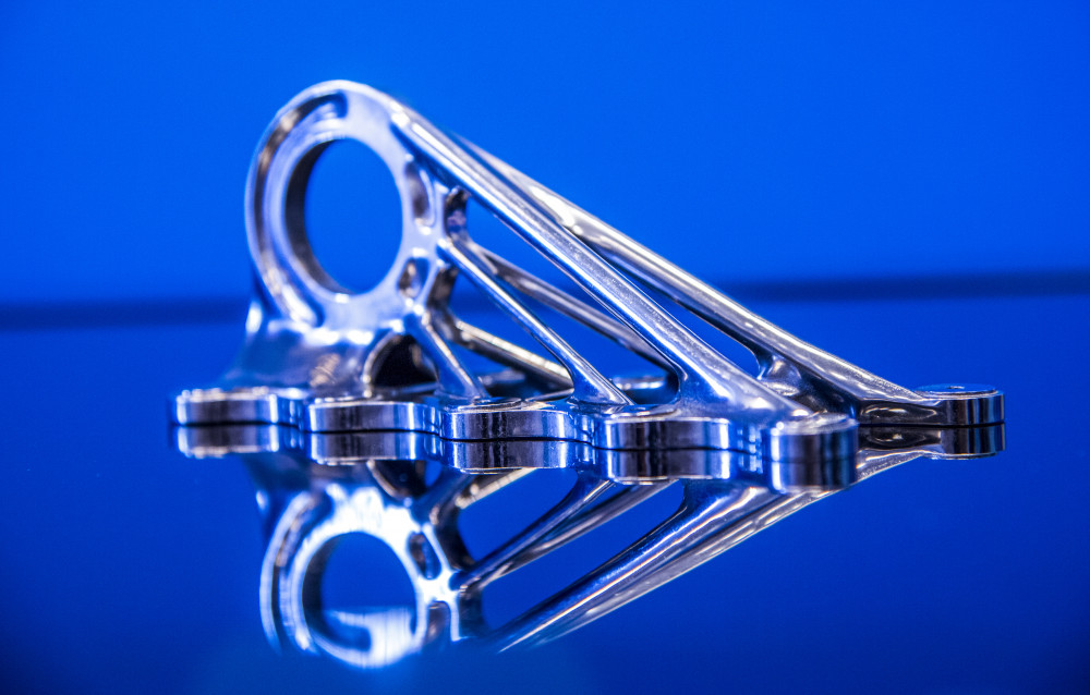 Im 3-D-Druck gefertigte Halterung für Flugzeug-Kabinenbauteile