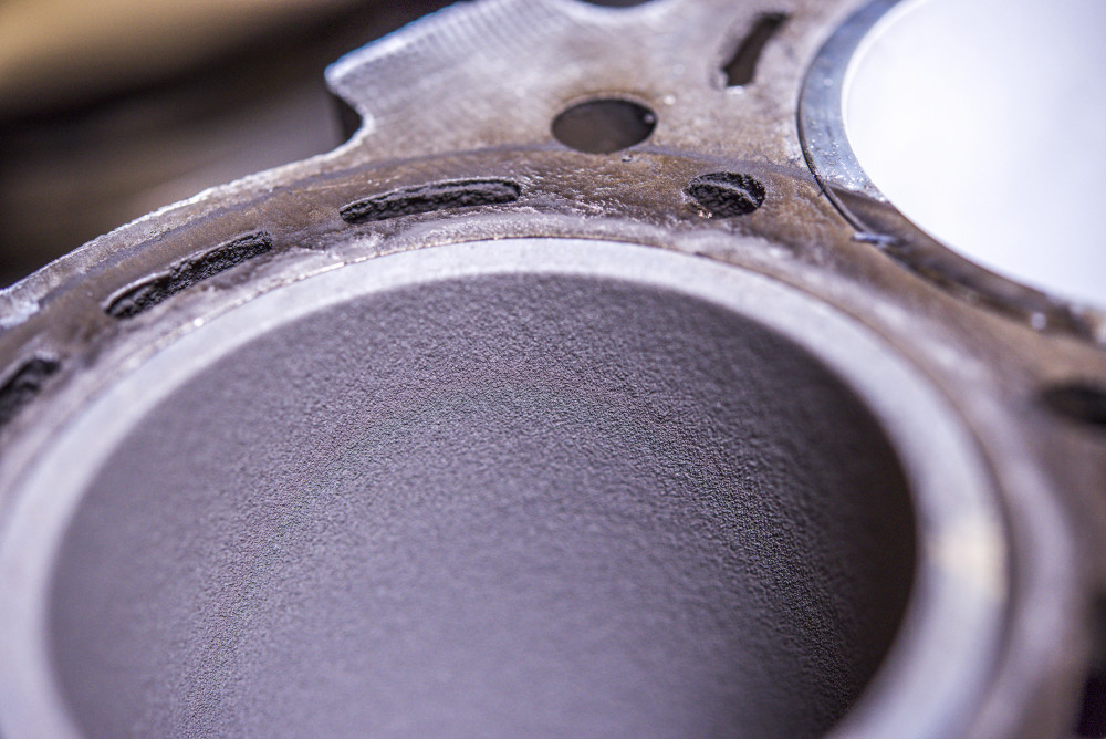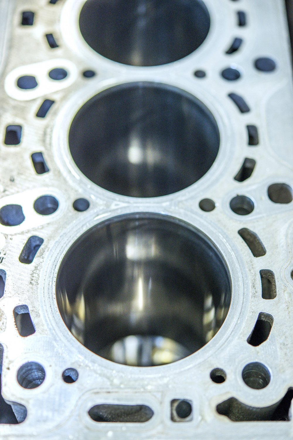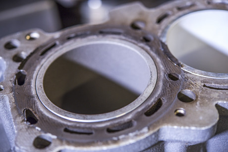 Beschichtete und spiegel-gehonte Zylinderbohrung eines Aluminium-Kurbelgehäuses