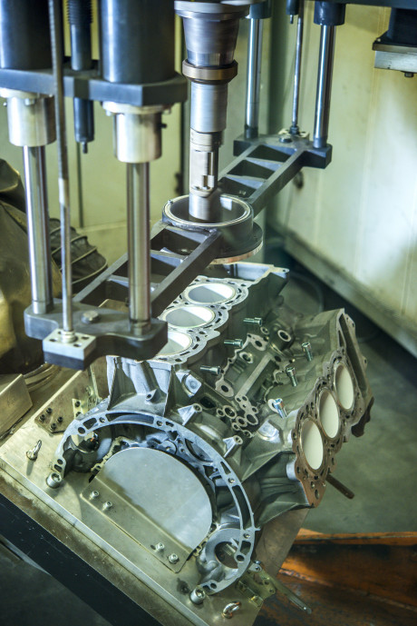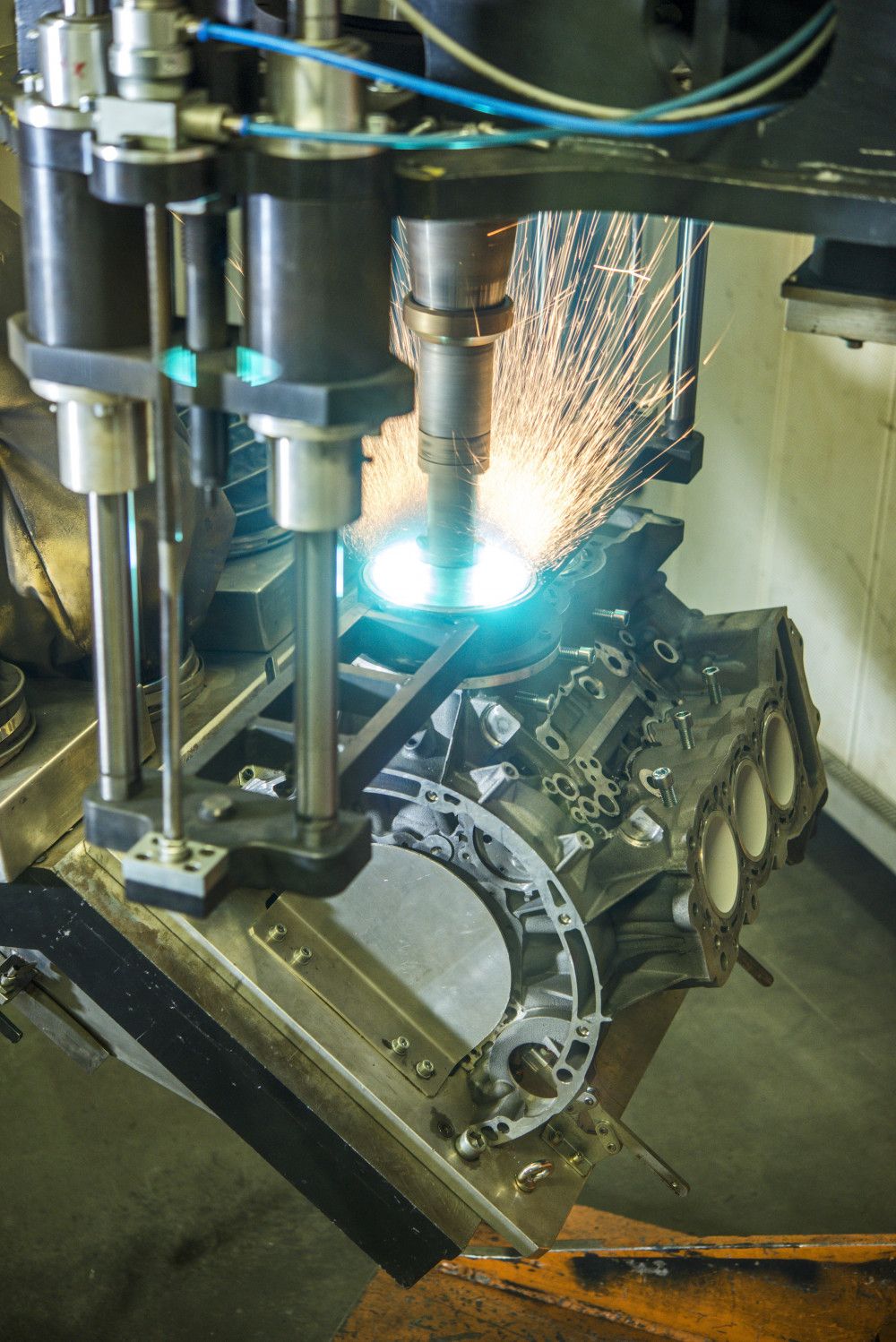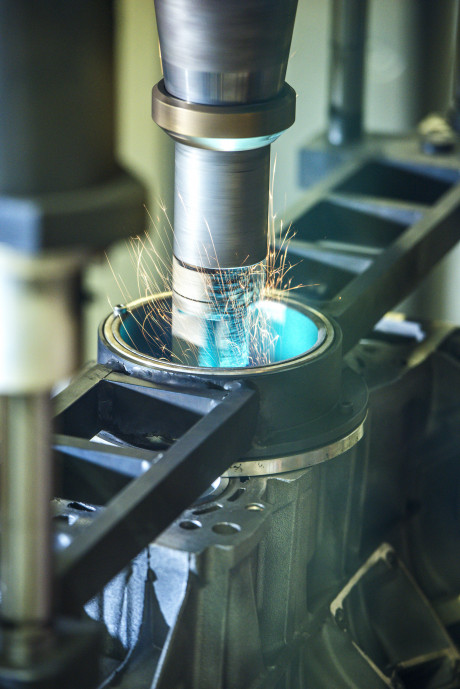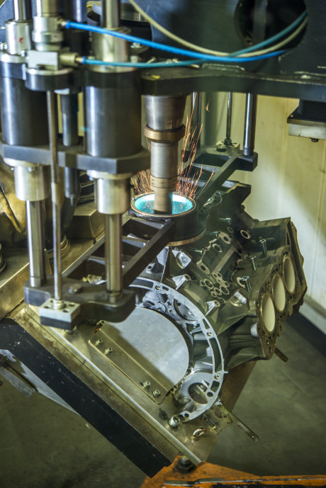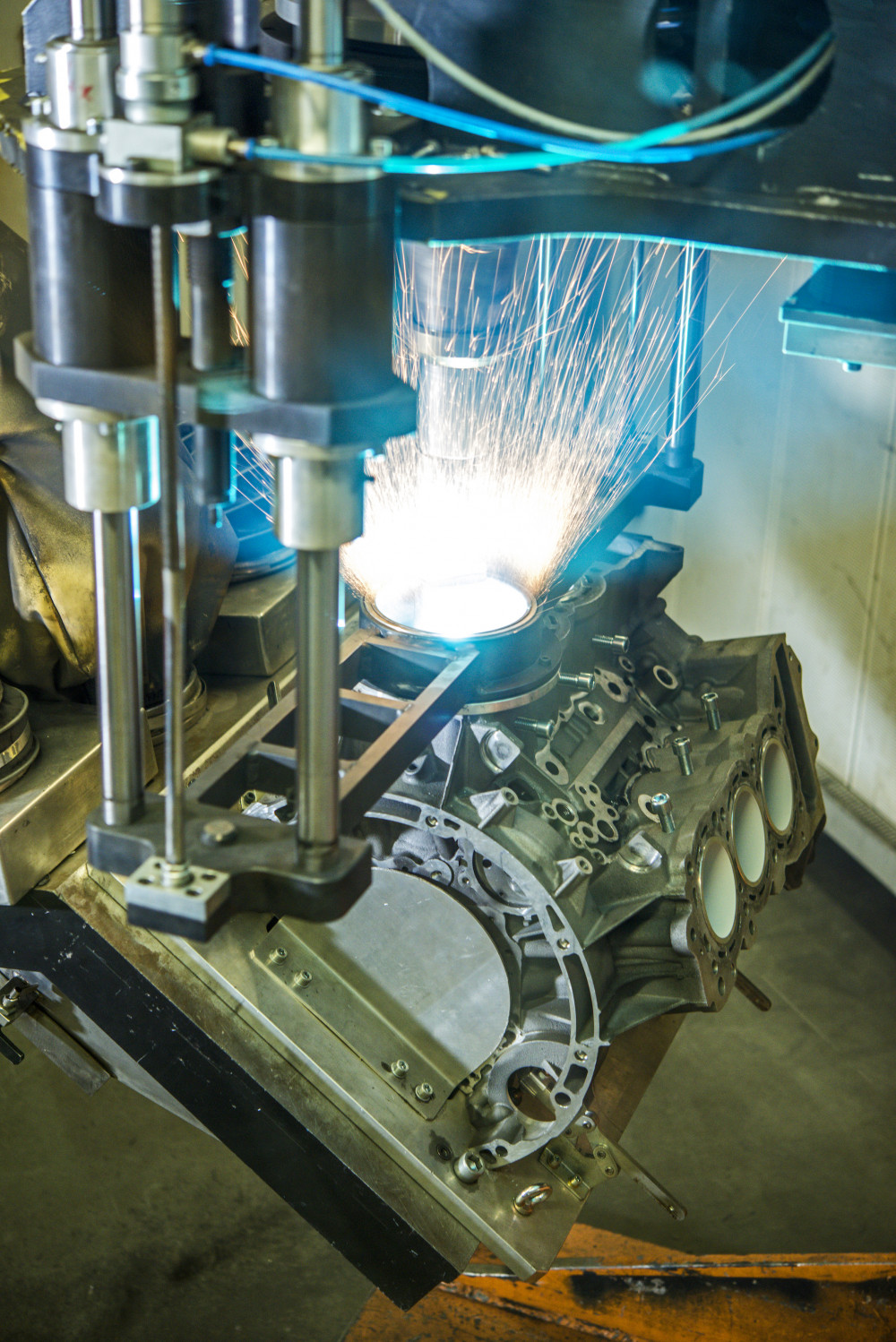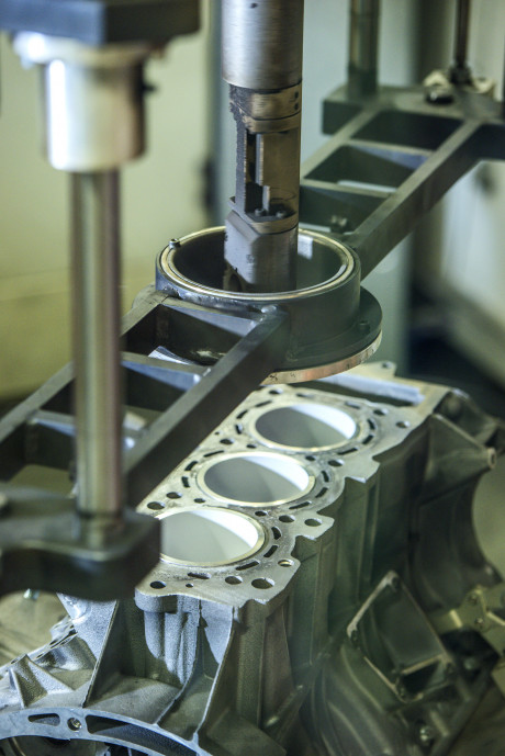 Beschichtung der Zylinderbohrungen eines V6-Kurbelgehäuses