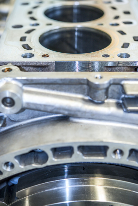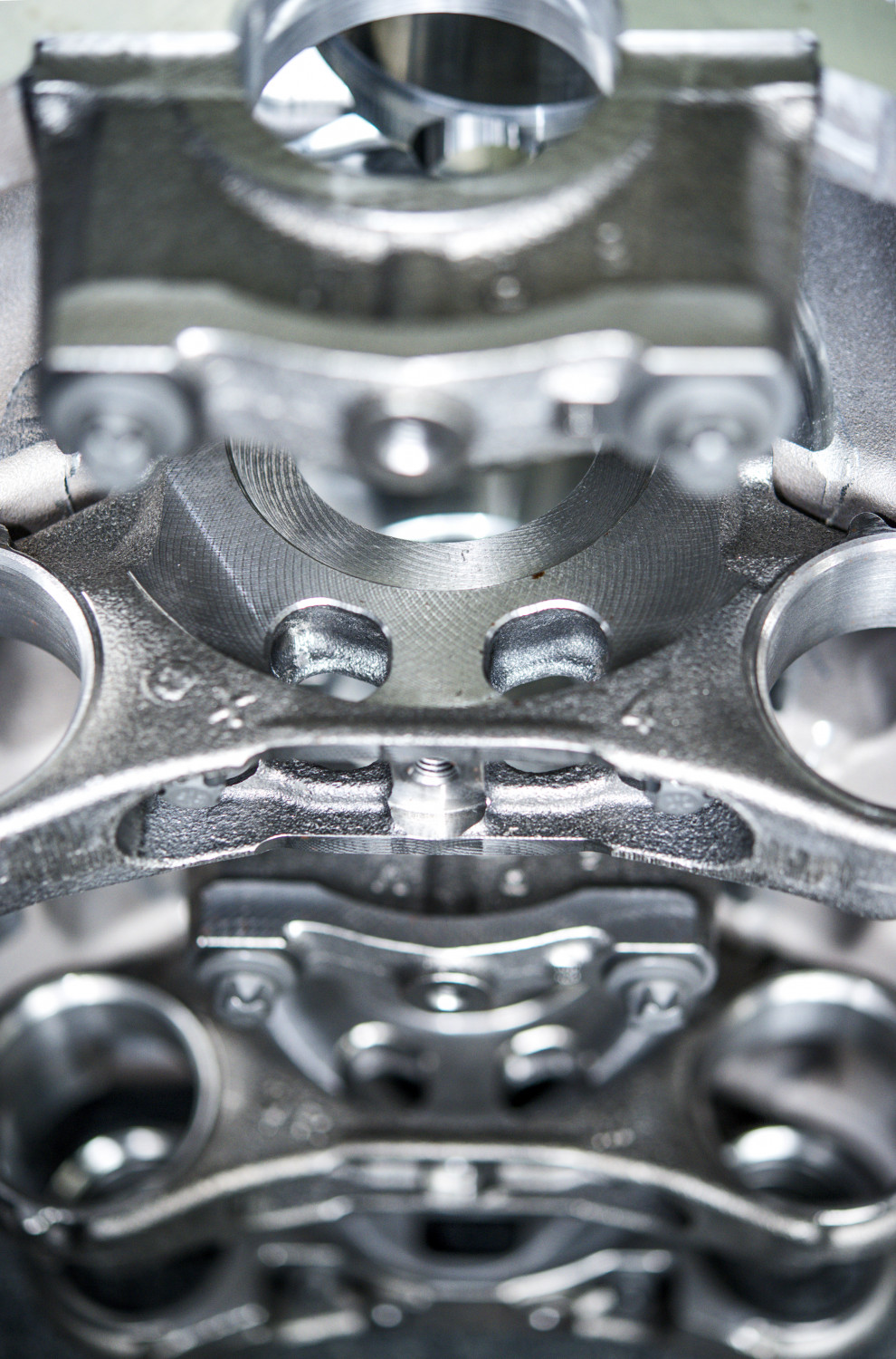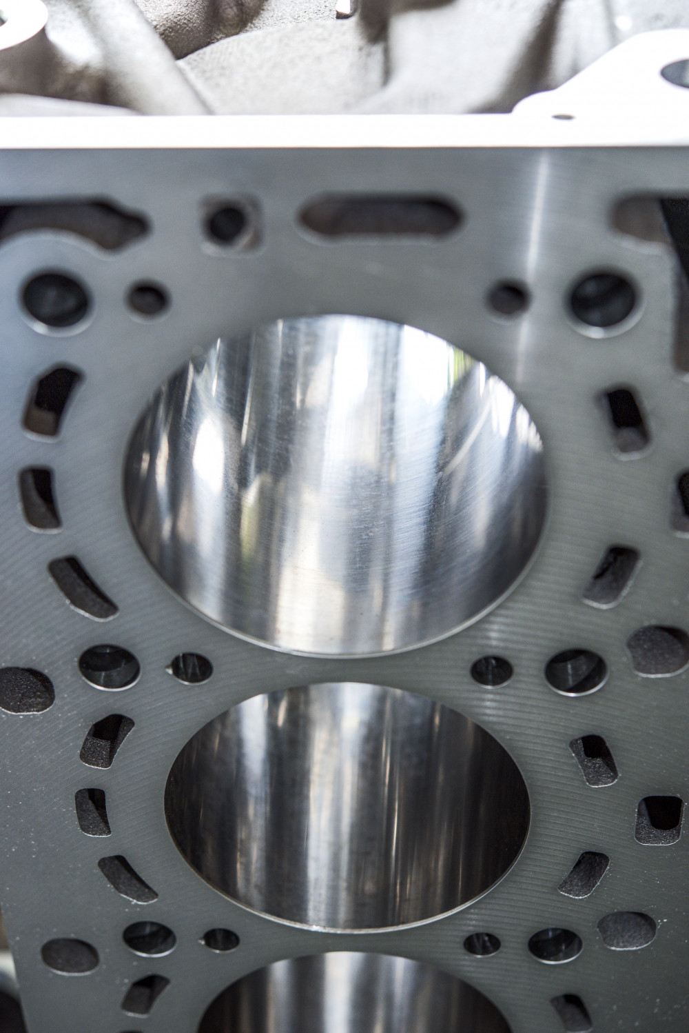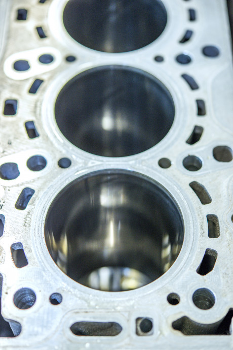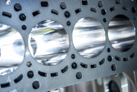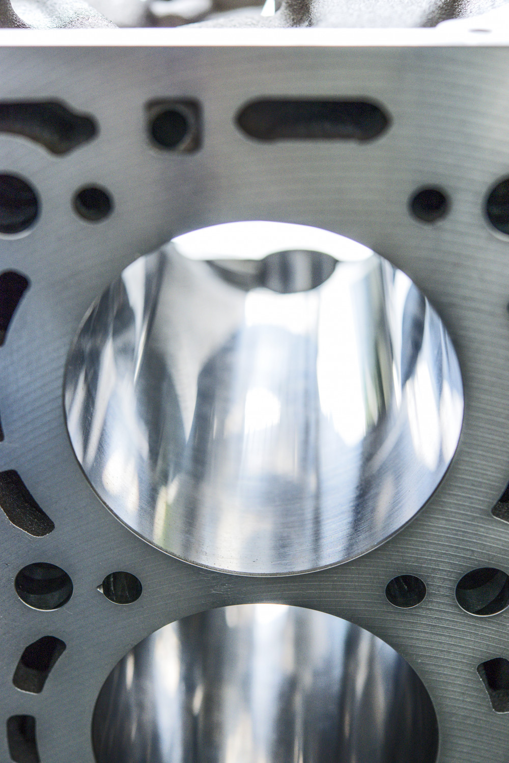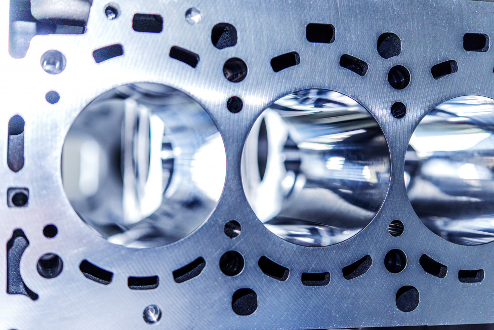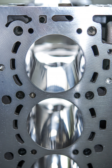 Beschichtete und spiegel-gehonte Zylinderbohrungen eines Aluminium-Kurbelgehäuses