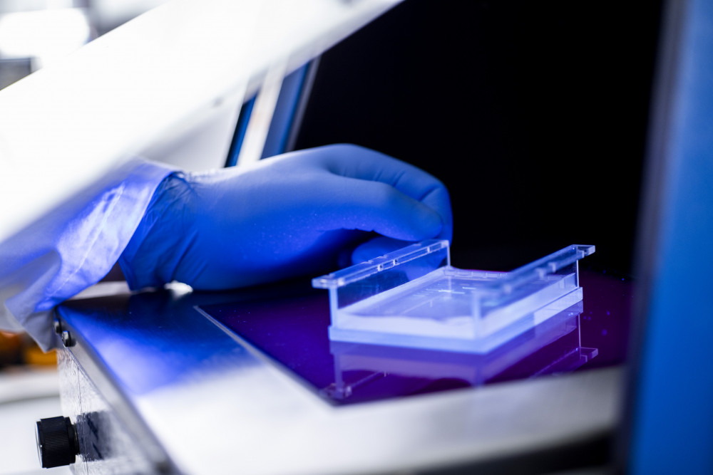 Gel mit fluoreszierenden DNA-Banden
