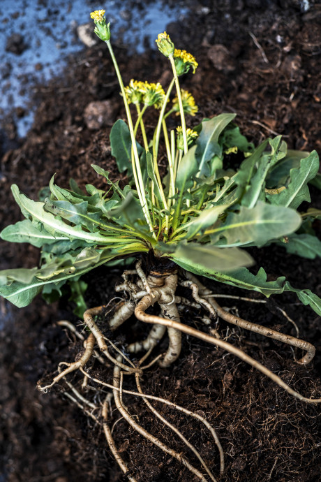 Russischer Löwenzahn mit Wurzel