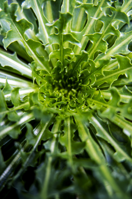 Laubblätter am Stängelgrund des Russischen Löwenzahns