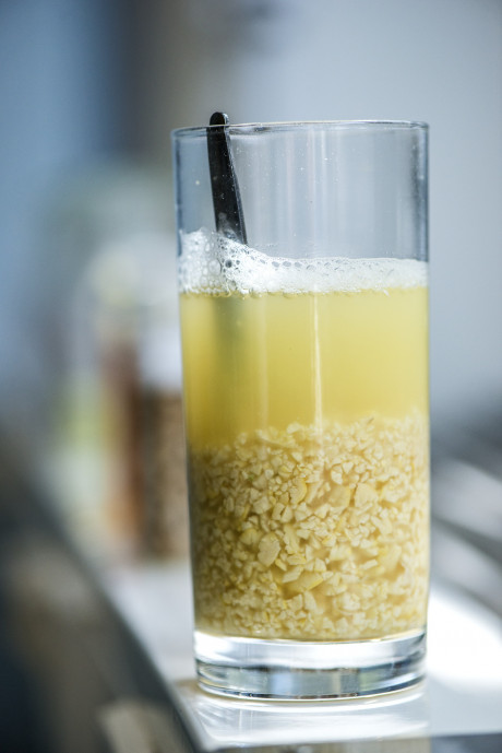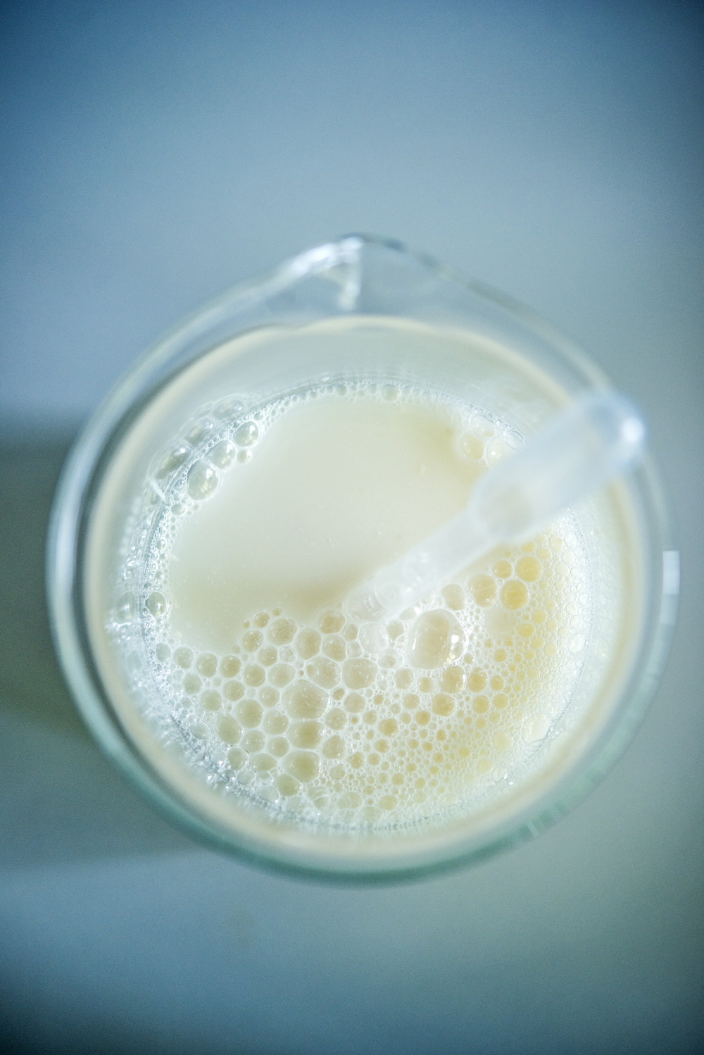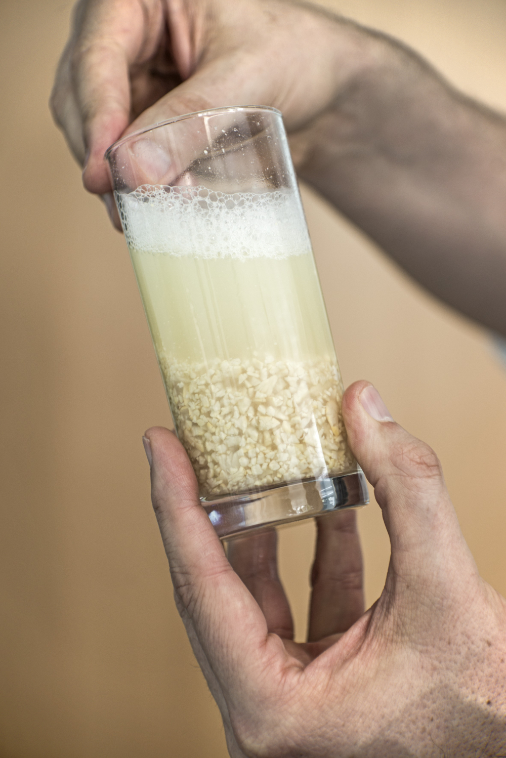 Vollfette Lupinenflocken in Alkohol und in Wasser